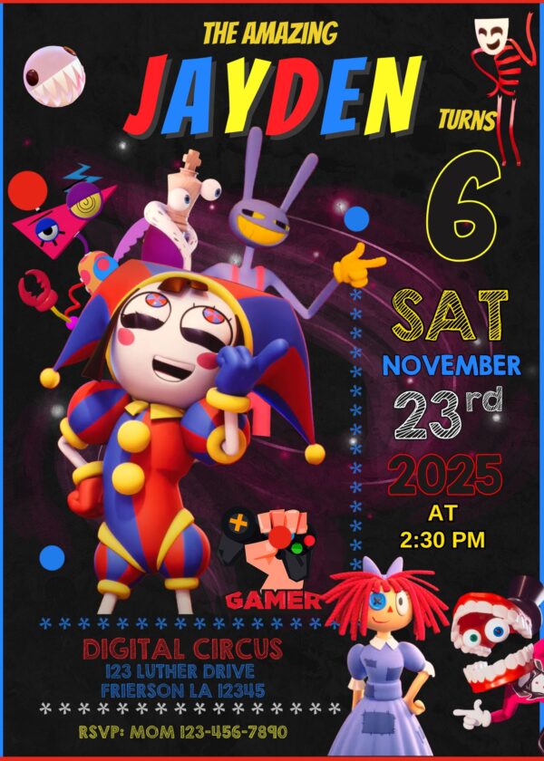 Awesome The Amazing Digital Circus Birthday Invitation. Personalized invite that you can send digital or print for your boy’s Digital Circus birthday party. Order now!