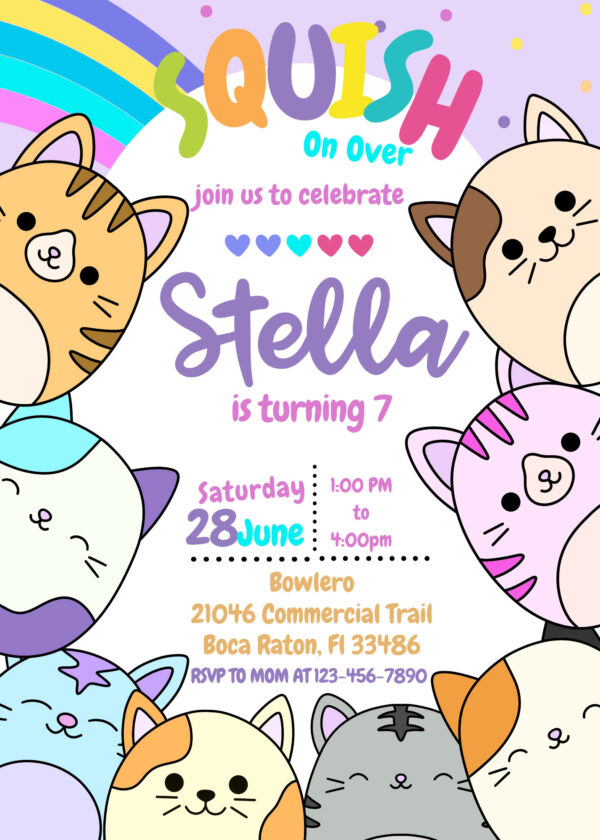 Get ready for the softest, squishiest birthday celebration with this adorable Squishmallows Birthday Invitation! Perfect for fans of these lovable plush characters, this digital invitation sets the tone for a fun-filled party full of cuddles, laughter, and excitement!